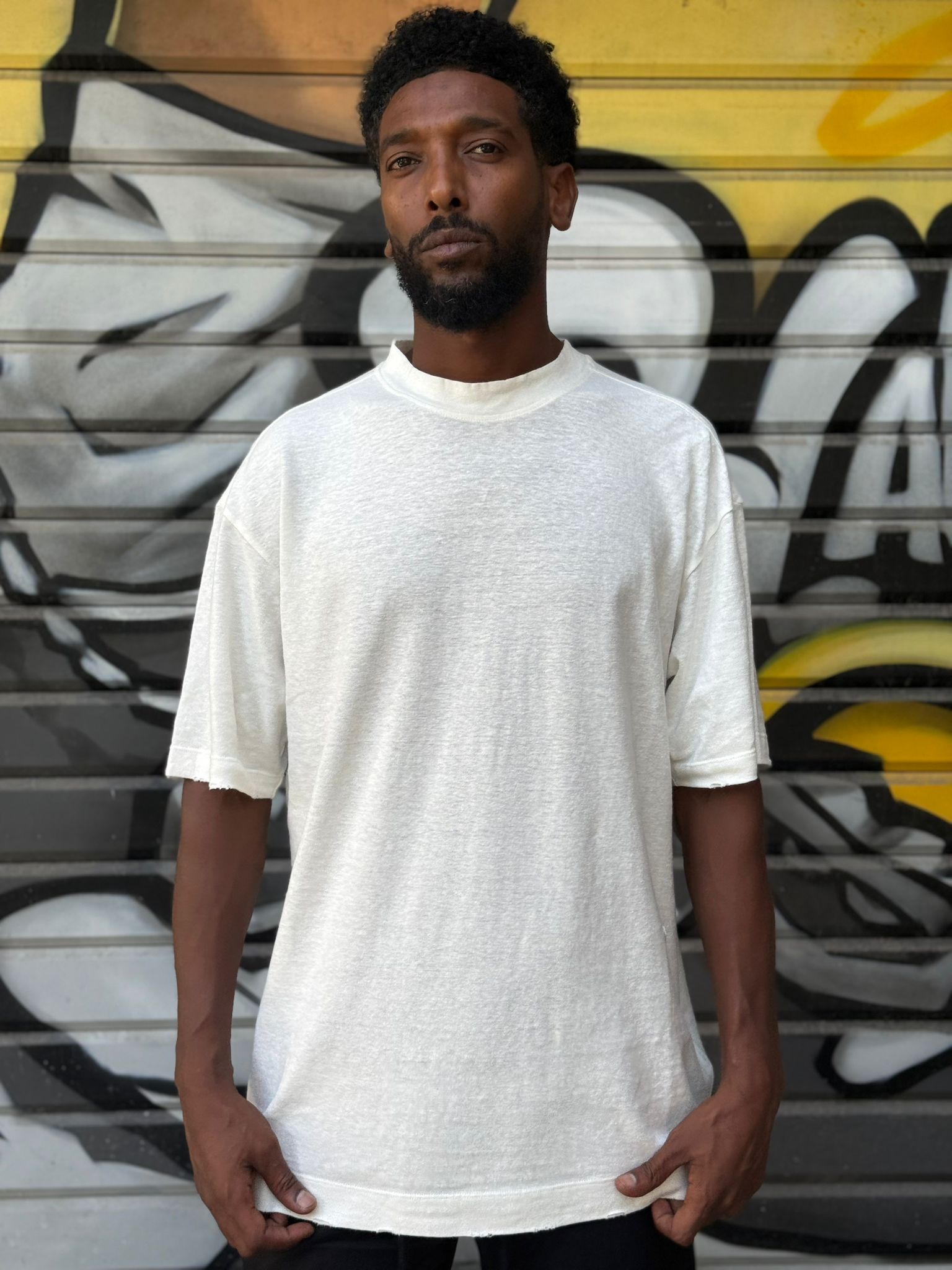 חולצה קצרה של באלר פשתן לבן מגיע במידות XS-XXL