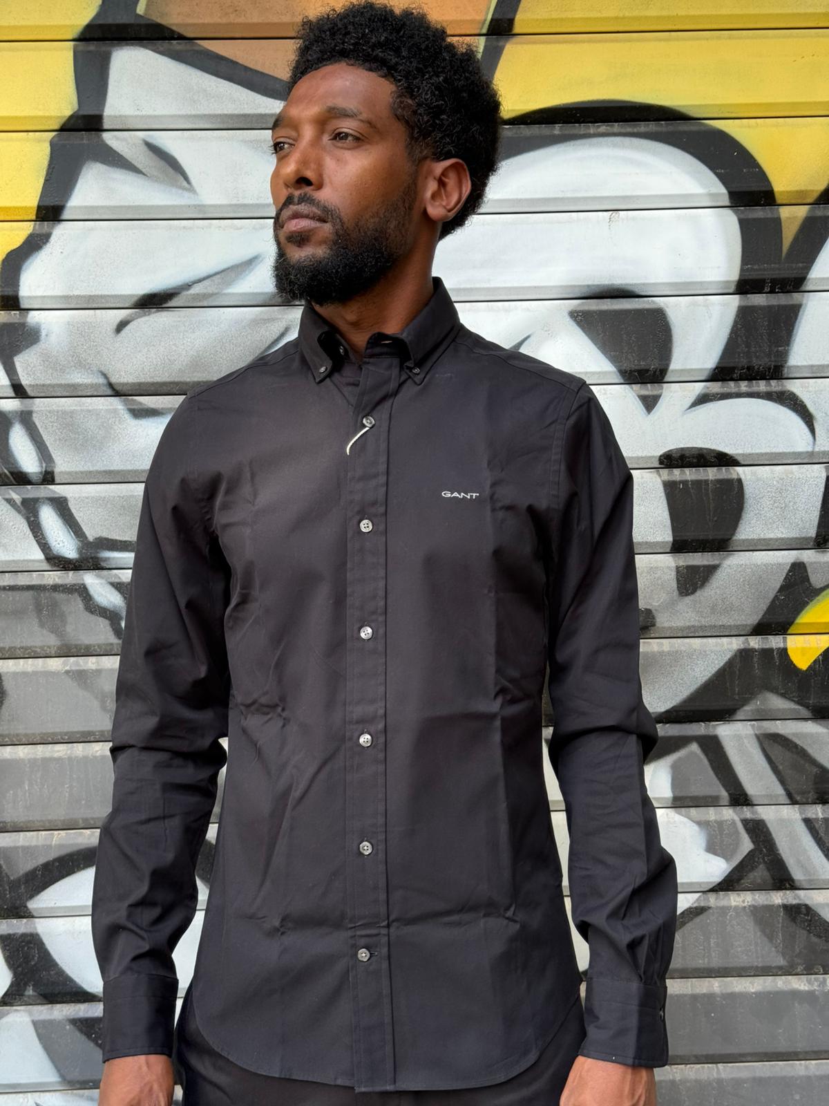מכופתרת גאנט שחור בד אוקספורד מגיע במידות S-XXXL