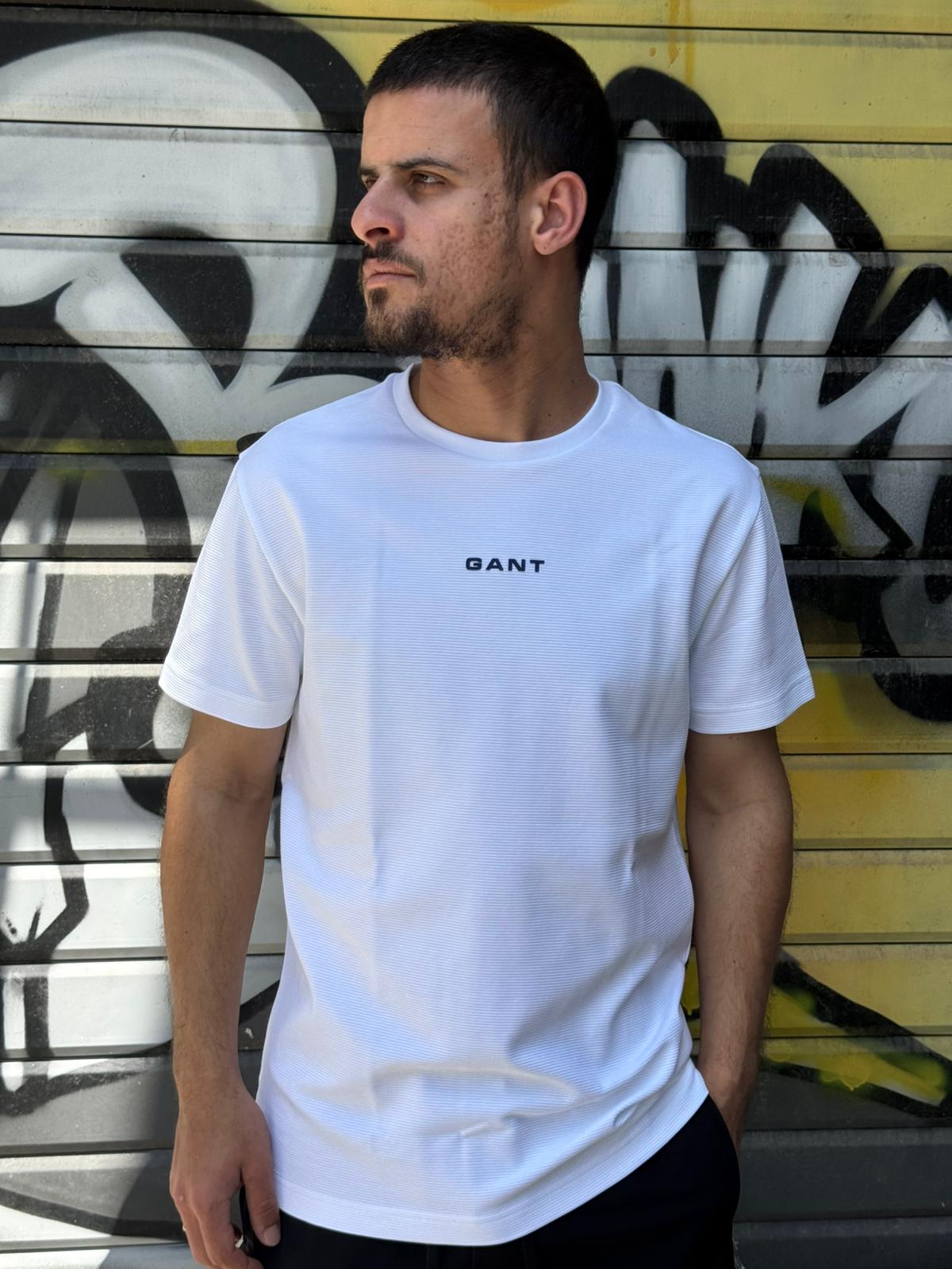 טישרט גאנט לבנה לוגו במרכז החזה מגיע במידות S-XXXL