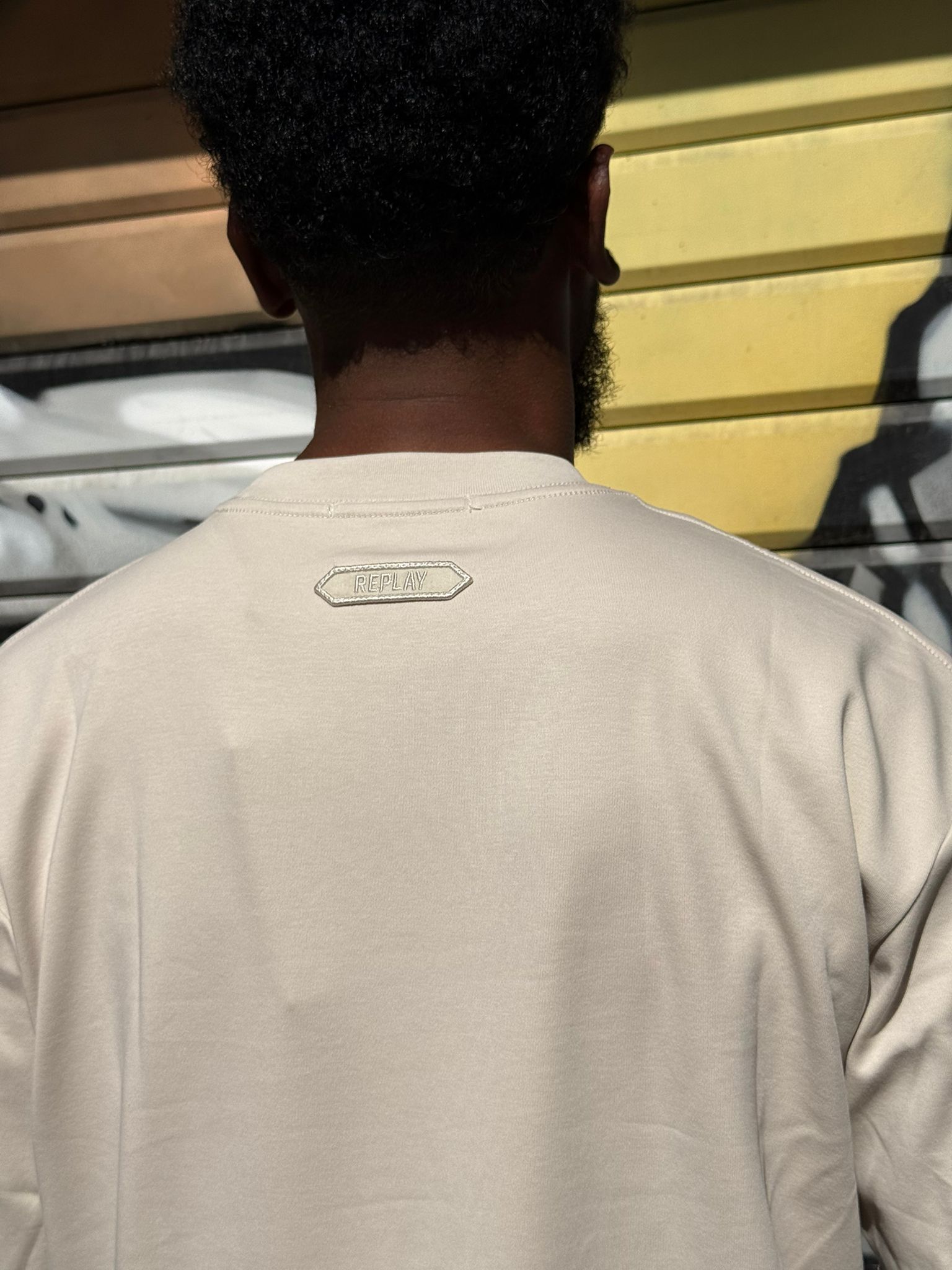 טישרט ריפליי חלקה צבע קרם מגיע במידות XS-XXXL