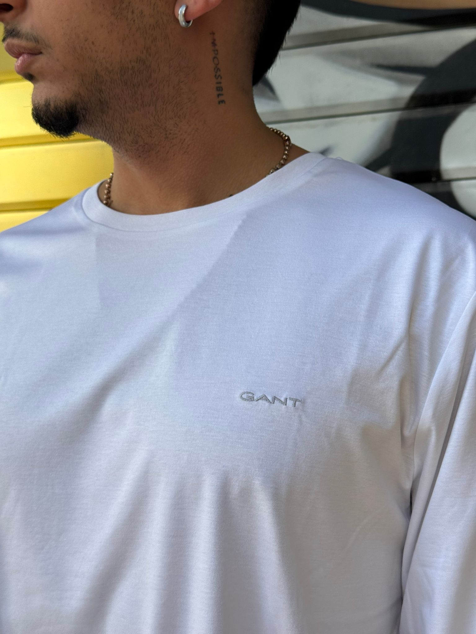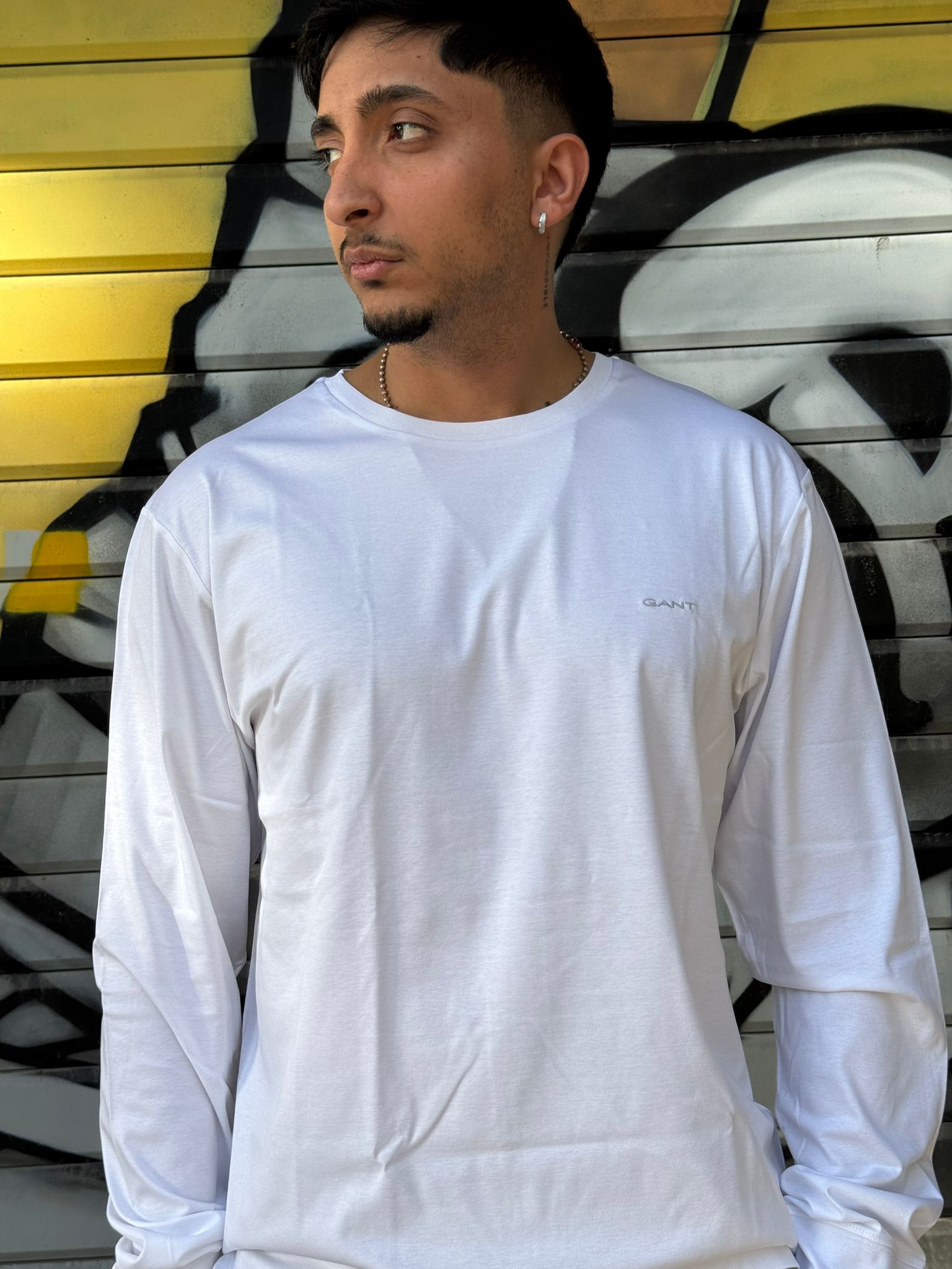 T-שירט גאנט ארוך דק לבנה בד מרצרייז מגיע במידות S-XXXL