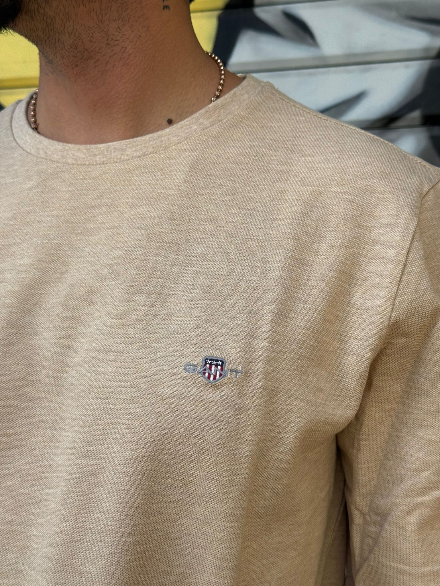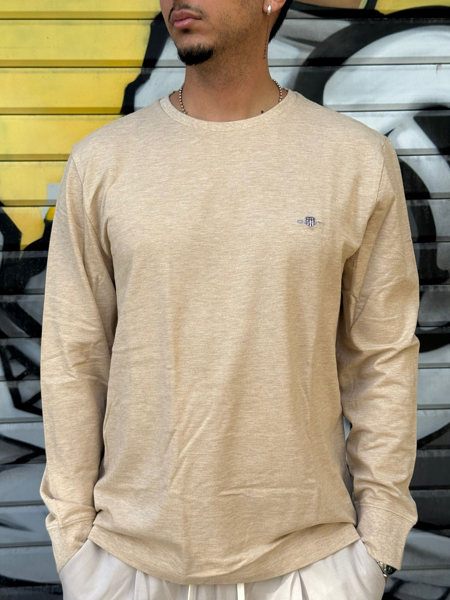 T-שירט חום ארוך דק גאנט לוגו בחזה מגיע במידות S-XXXL