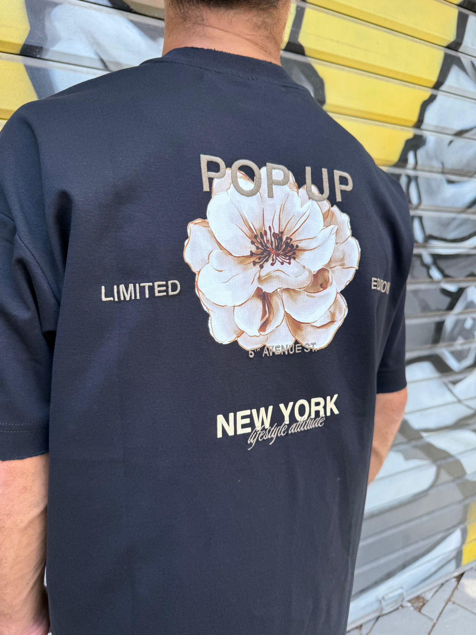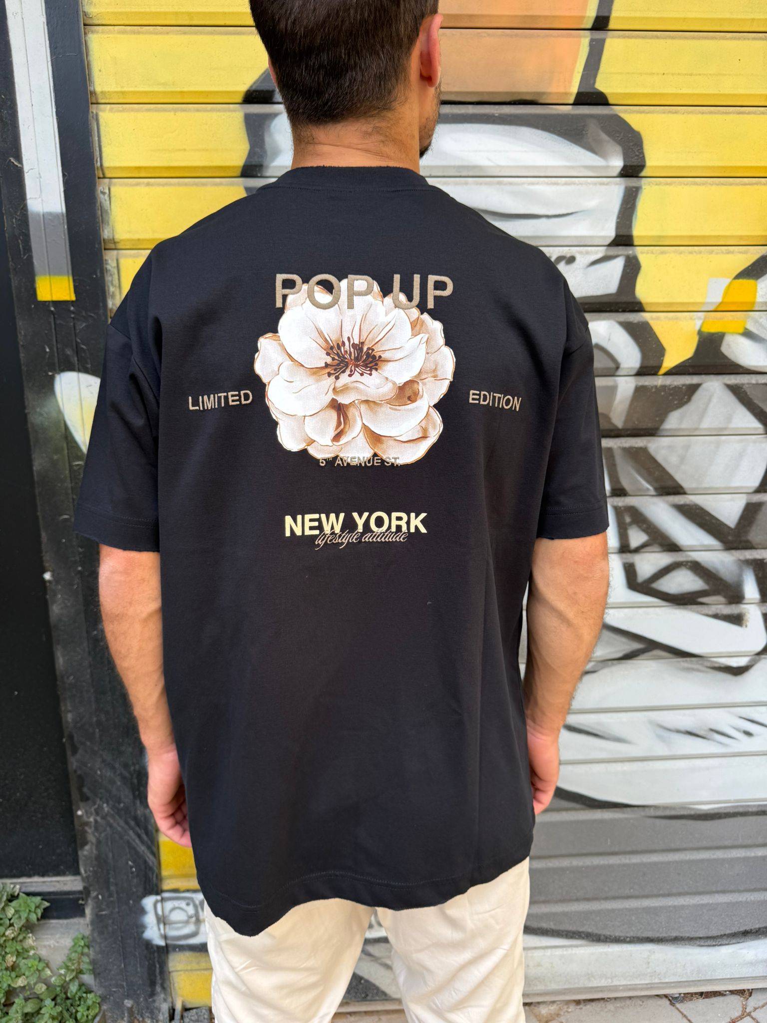 T-שירט קרייזר שחורה לוגו אחורי פרח אוברסייז בד מרצרייז מגיע במידות XS-XXXL