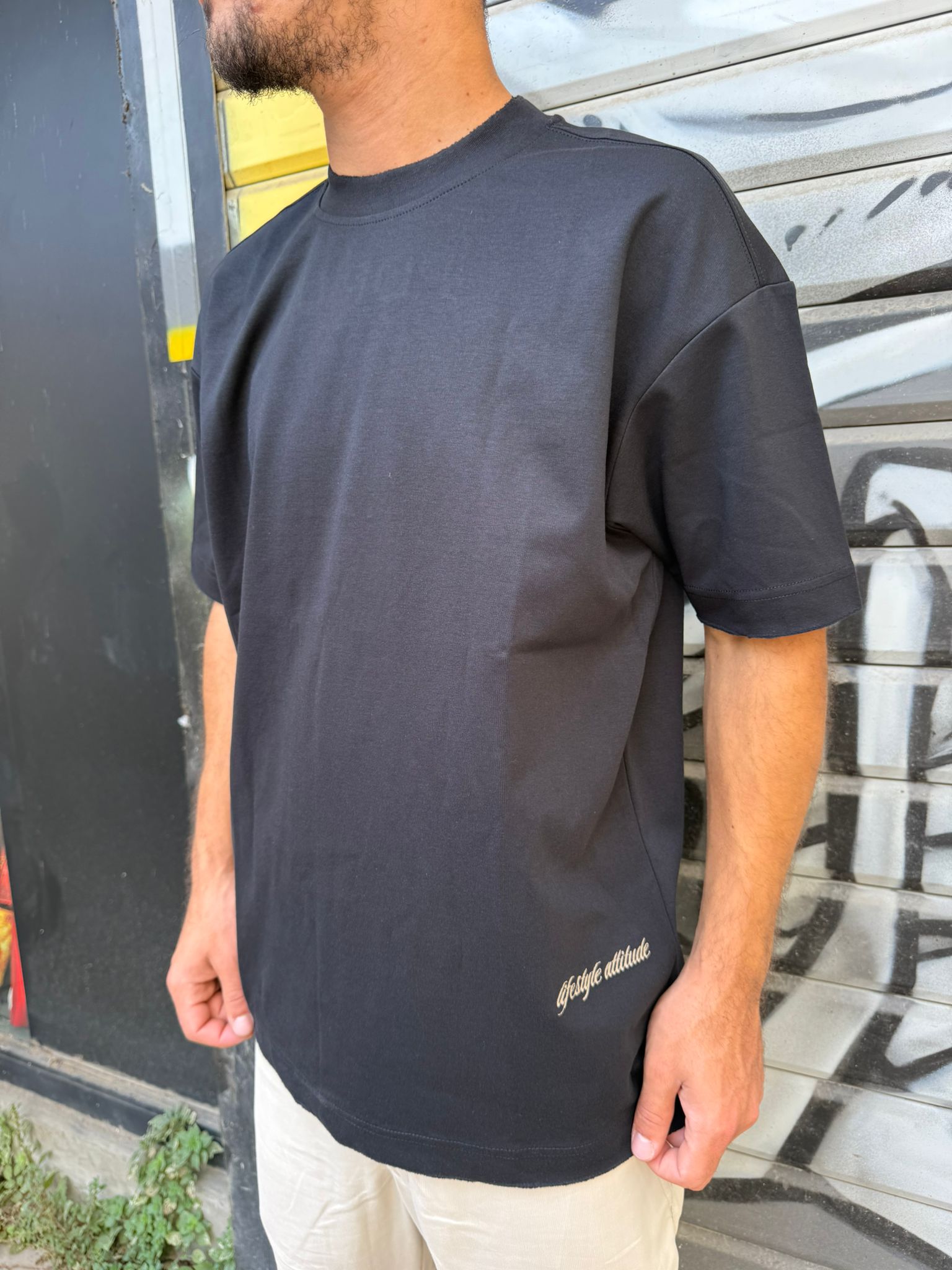 T-שירט קרייזר שמנת לוגו קידמי גב חלק אוברסייז בד מרצרייז