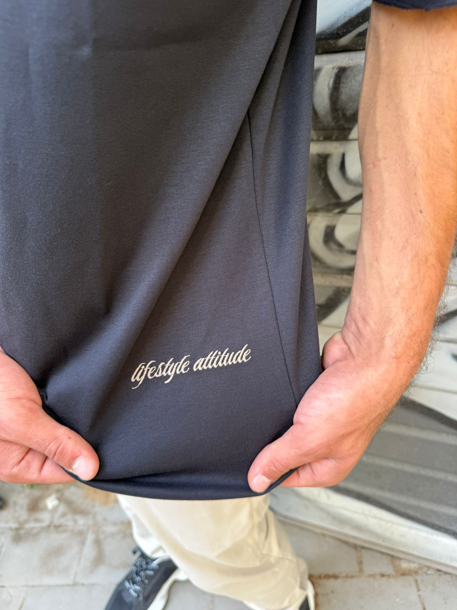 T-שירט קרייזר שחורה חלקה לוגו בצוואר בד מרצרייז
