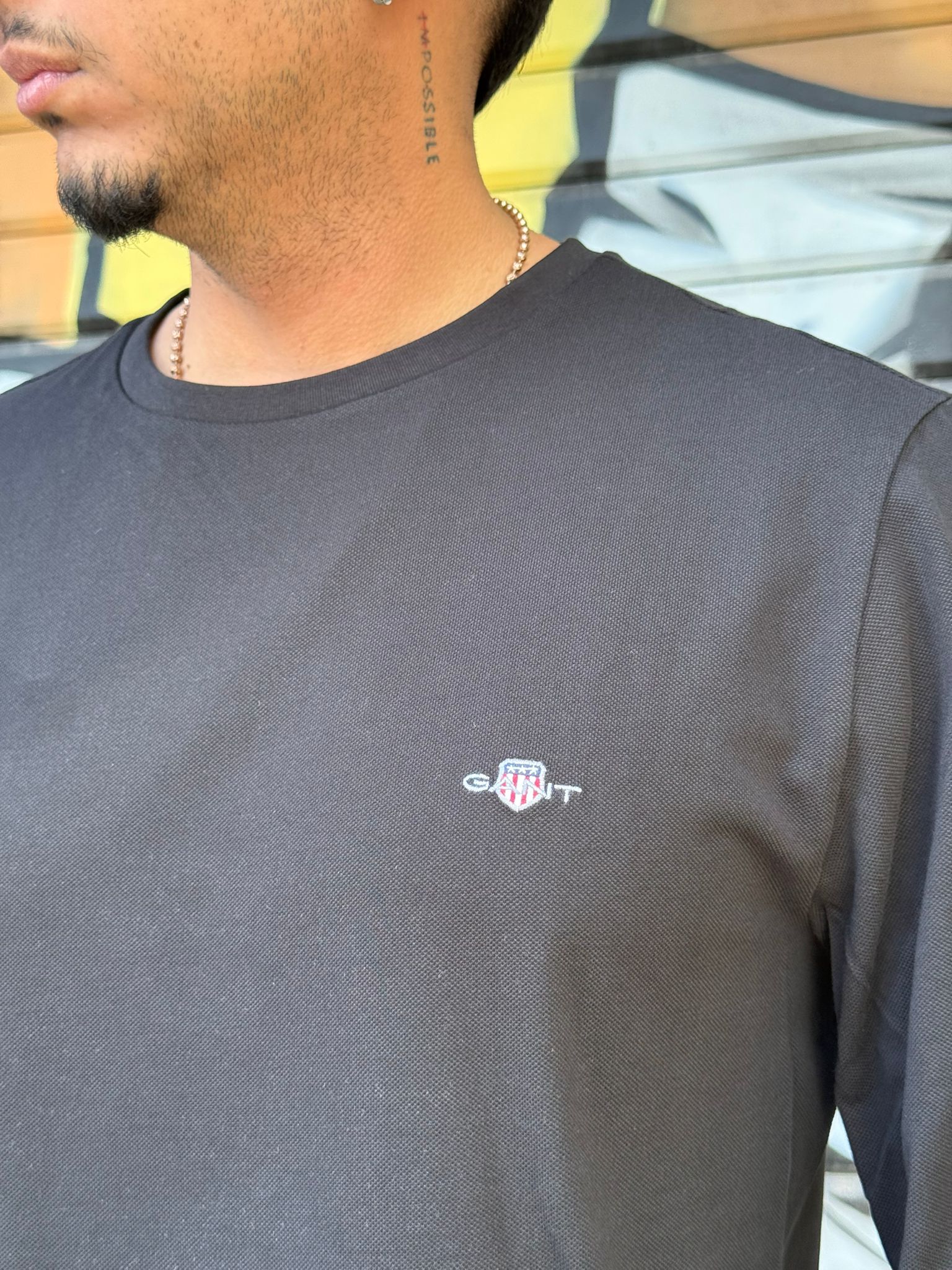 T-שירט שחורה ארוך דק גאנט לוגו בחזה מגיע במידות S-XXXL
